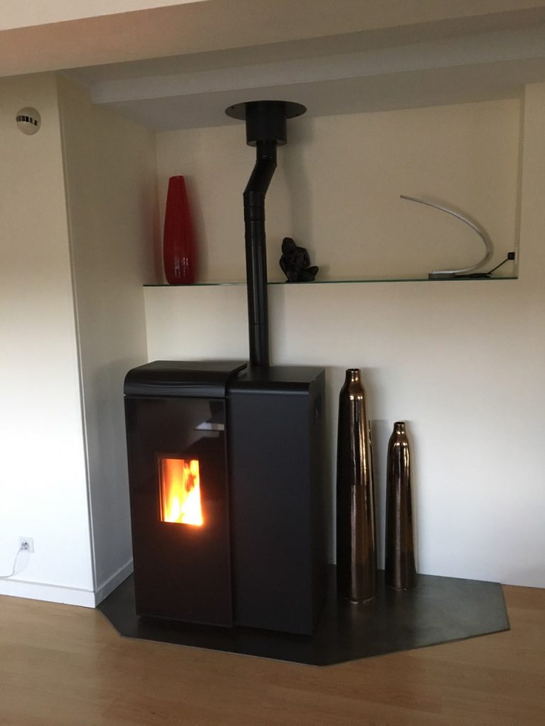 Poêle à Bois Scan-Line 850 tout céramique acier Noir installé à Pont du Château 63430