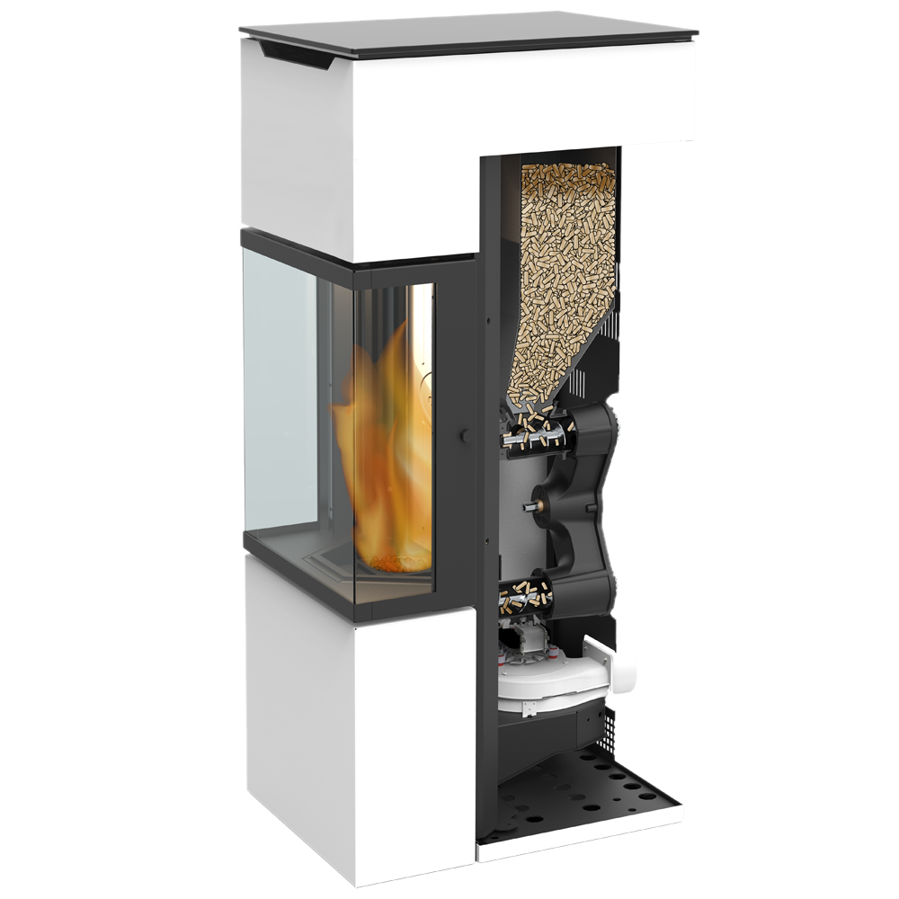 En outre, grâce à ce système innovant d’alimentation, l’approvisionnement du combustible par le bas permet d’obtenir une flamme stable et plus naturelle, comme celle d’une combustion au bois.